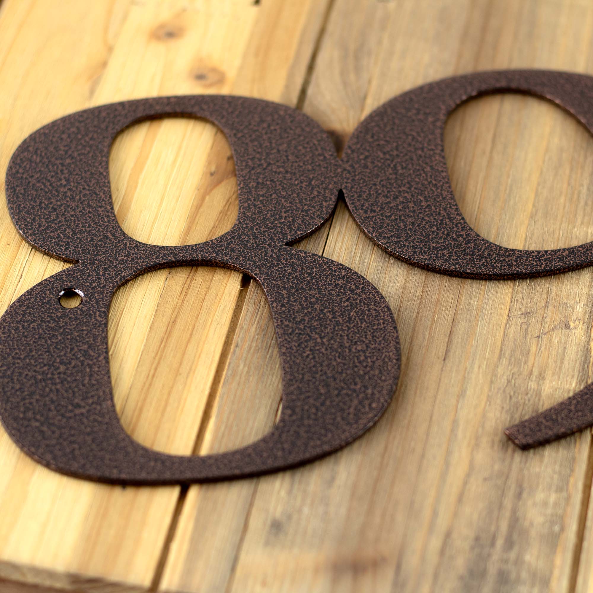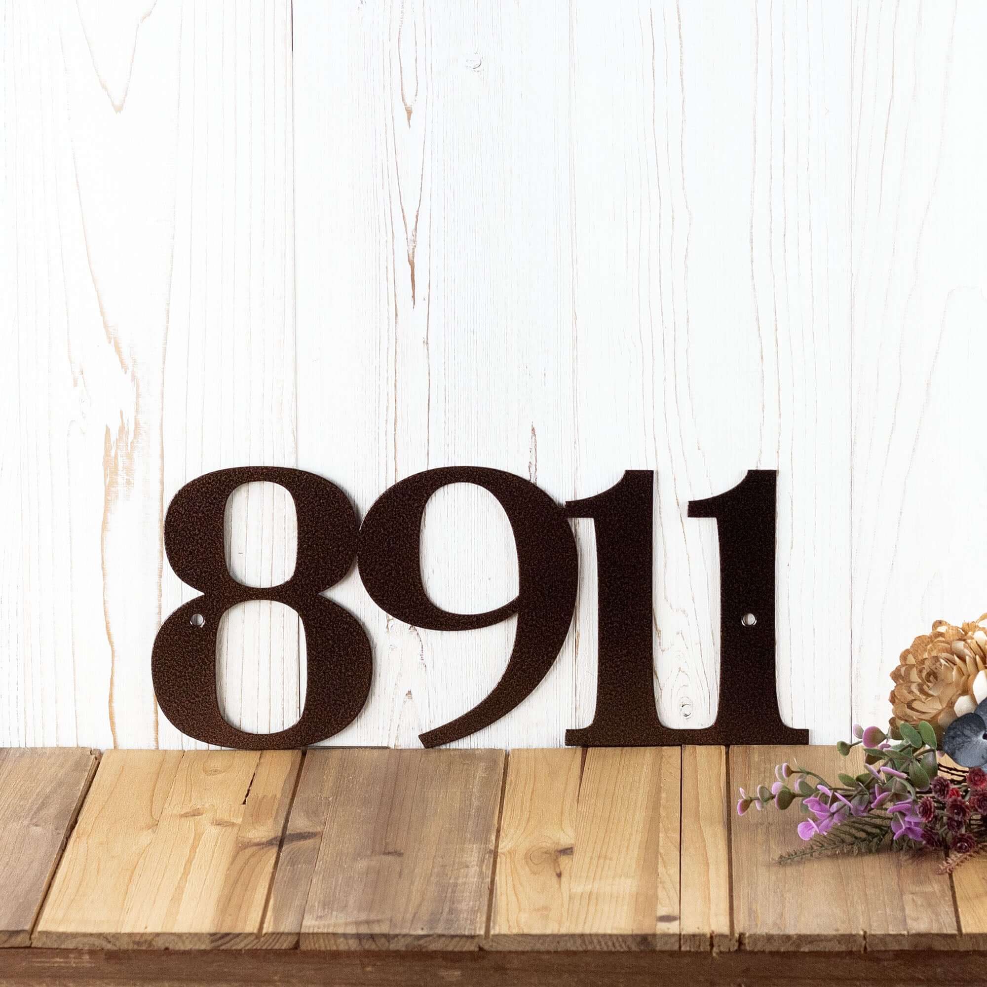 This metal house number sign is an attractive and durable way to display your address. Your sign is laser cut from premium quality 14 gauge steel and powder coated for a durable finish. You can also choose to leave your sign as raw steel (dark gray in color) and spray paint in the color of your choice or leave it to naturally rust. The sign can be customized with up to five digits. The metal numbers are 5.25 inches tall, providing a clear, bold display of your address. This metal house number sign is an ideal way to add a modern stylish touch to your home.