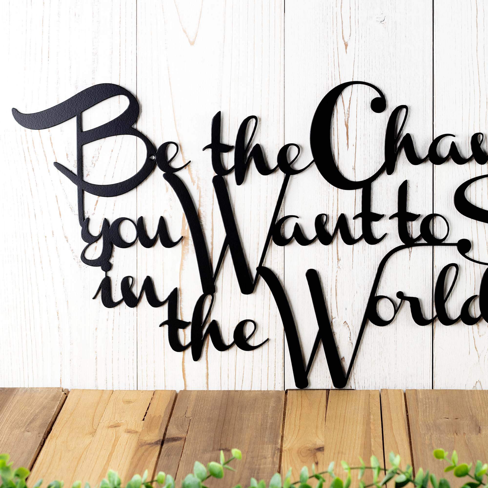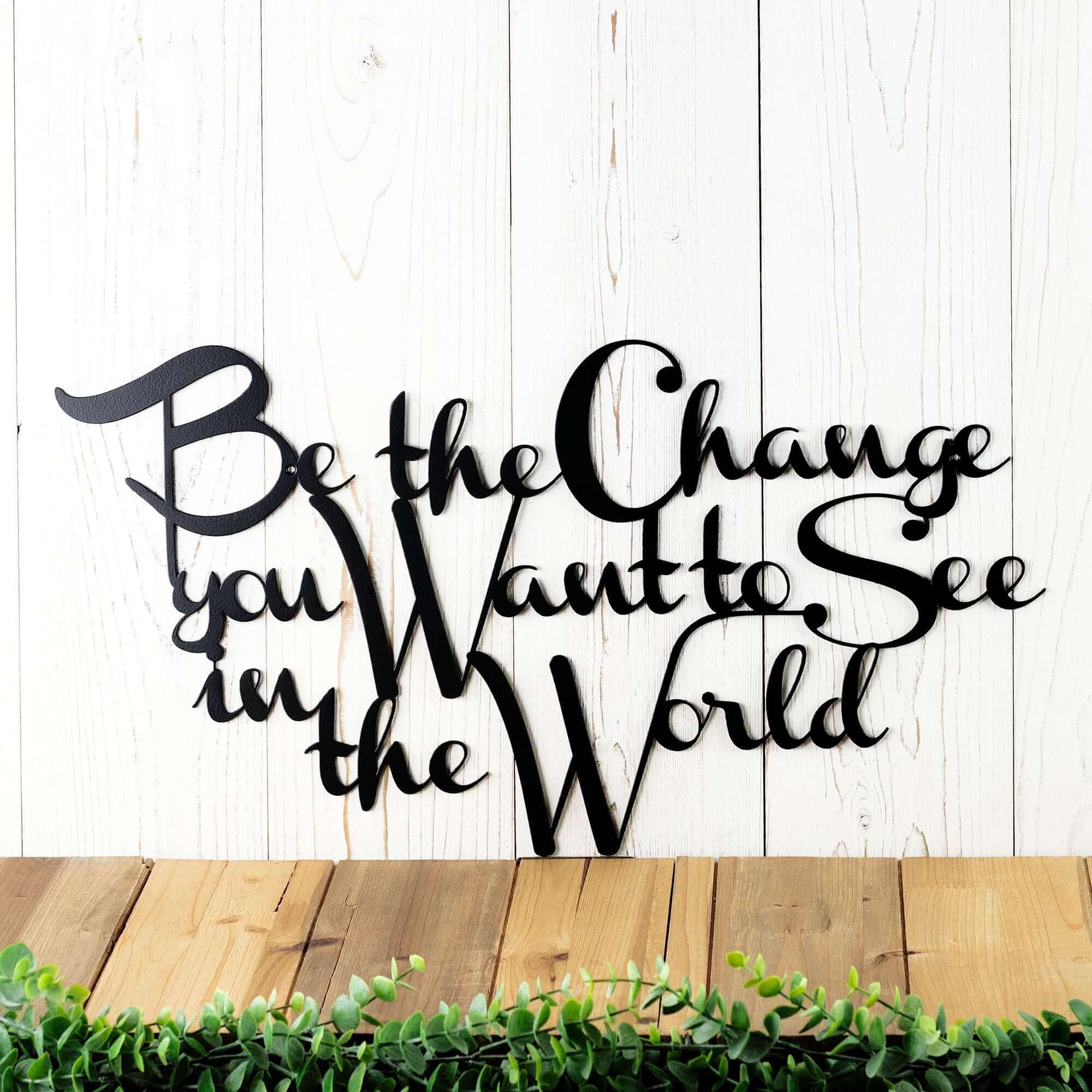 Elevate your space with our "Be The Change You Want To See In The World" Metal Wall Art. Crafted with precision and care, this inspirational piece carries a powerful message. Hang it in your home or workspace as a daily reminder to inspire positive change, both within yourself and the world around you. The elegant design and durable metal construction ensure that this art serves as a timeless source of motivation and reflection. It's a striking addition to any room, encouraging you to take action and make a difference, one step at a time.