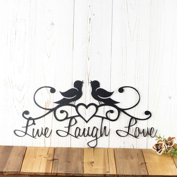 Live Laugh Love Metal Wall Art with Birds, Heart and Scrolls