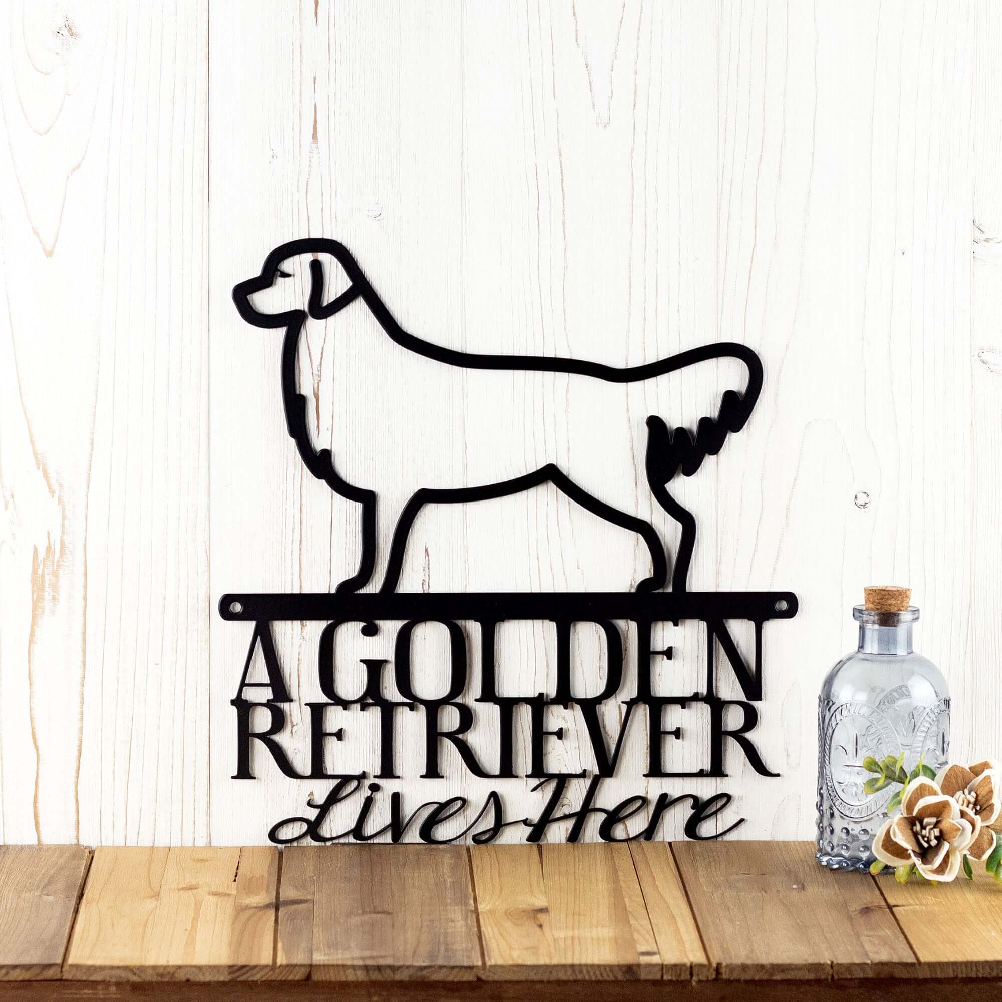 Our "Golden Retriever Lives Here" metal sign is the perfect way to show off your love for your beloved Golden Retriever. This beautiful sign features a detailed Golden Retriever silhouette, and will provide a timeless reminder of your love for your furry friend. Your sign is laser cut from premium quality steel and powder coated for a durable finish. You can also choose to leave your sign as raw steel (dark gray in color) and spray paint in the color of your choice or leave it to naturally rust. Hang it in your living room, entryway, or porch and show all your visitors that a Golden Retriever lives here!