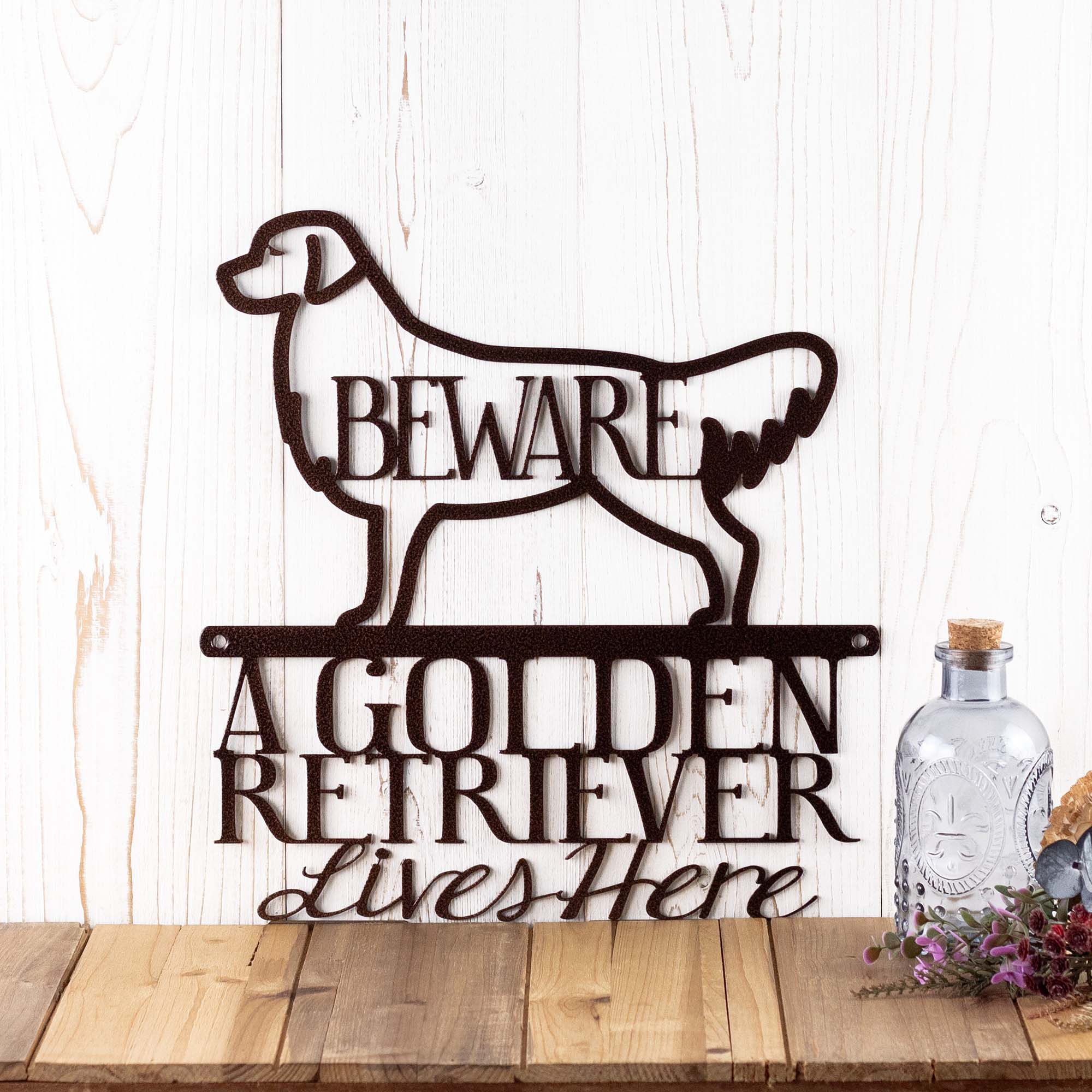 Our "Golden Retriever Lives Here" metal sign is the perfect way to show off your love for your beloved Golden Retriever. This beautiful sign features a detailed Golden Retriever silhouette, and will provide a timeless reminder of your love for your furry friend. Your sign is laser cut from premium quality steel and powder coated for a durable finish. You can also choose to leave your sign as raw steel (dark gray in color) and spray paint in the color of your choice or leave it to naturally rust. Hang it in your living room, entryway, or porch and show all your visitors that a Golden Retriever lives here!