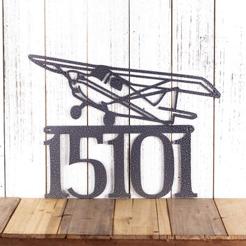 Our unique and charming airplane metal house number sign is the perfect gift for aviation enthusiasts. Your sign is laser cut from premium quality 14 gauge steel and powder coated for a durable finish. You can also choose to leave your sign as raw steel (dark gray in color) and spray paint in the color of your choice or leave it to naturally rust. This airplane metal house number sign is both eye-catching and practical, featuring large, easy-to-read numbers that are sure to make your home stand out. The aviation-inspired design adds a playful touch to your home's exterior, making it a great conversation starter for visitors and passersby alike.